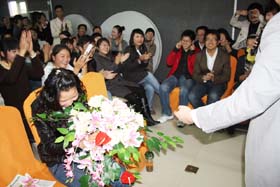 王麗經(jīng)理深情獨唱,客服部美女歌聲甜美,場下fans奮勇獻(xiàn)花