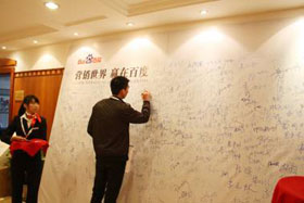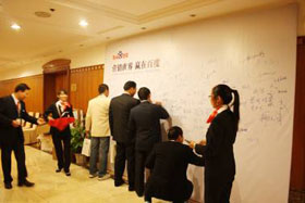 企業(yè)家們在簽到板上紛紛留名紀(jì)念