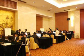 臺上晟皞經(jīng)理精彩演講,臺下企業(yè)家們聽得聚精會神遇到不懂的及時向我們的工作人員請教