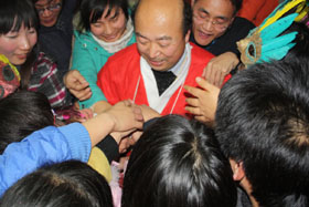 大家開心地?fù)屖フQ禮物