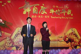 銀鼠辭歲,金牛迎春,1月23日,“舞百度?牛你牛我”09新春年會在美麗的山青水秀閃亮登場。