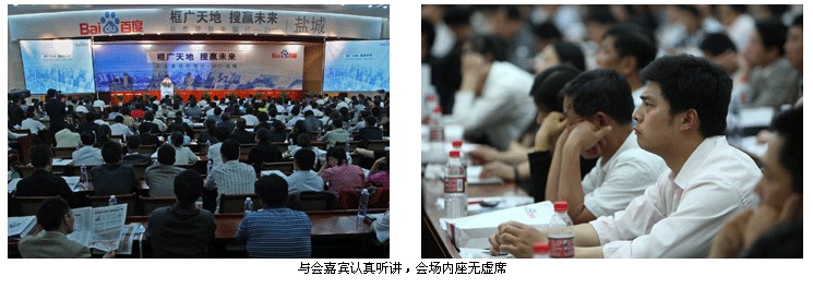 6月10日,陰雨綿綿?!盃I(yíng)銷中國行”活動(dòng)在鹽隆重拉開帷幕。此次活動(dòng)旨在探討如何提升企業(yè)網(wǎng)絡(luò)營(yíng)銷能力來促進(jìn)地方經(jīng)濟(jì)繁榮,受到政府、學(xué)術(shù)界、商界的高度重視。市經(jīng)信委主任羊維達(dá)、臺(tái)灣因特網(wǎng)營(yíng)銷研究協(xié)會(huì)秘書長(zhǎng)陳定震、百度公司服務(wù)管理部總監(jiān)任建斌、百度公司渠道部銷售總監(jiān)欒天、百度公司渠道部渠道經(jīng)理曹宇等35位嘉賓以及500多家鹽城市重量級(jí)企業(yè)家代表出席了活動(dòng),共同見證這一盛況!