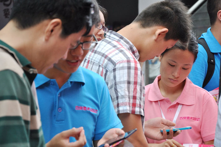 百度糯米優(yōu)惠的團(tuán)購價(jià)格、優(yōu)質(zhì)的商家吸引了參會(huì)者駐足觀看,拿起了手機(jī)趕快到百度糯米上團(tuán)購,小姐妹們今天的午飯有著落嘍!